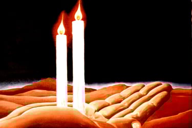 Positioned just off-centre, the candles look strong and dominate the composition. However a closer look reveals their perpetual vulnerability as they constantly rely upon the supporting hand in order to remain upright and functional. Similar to our global civilisation that also relies on mutual support and tolerance in order to function, and indeed survive.