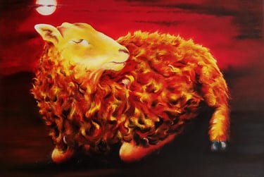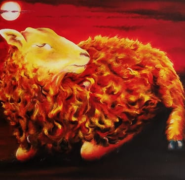 Golden Fleece was inspired from a photograph I'd taken during a wonderful day out at a Visiting Farm, a place where people can interact with the resident animals usually